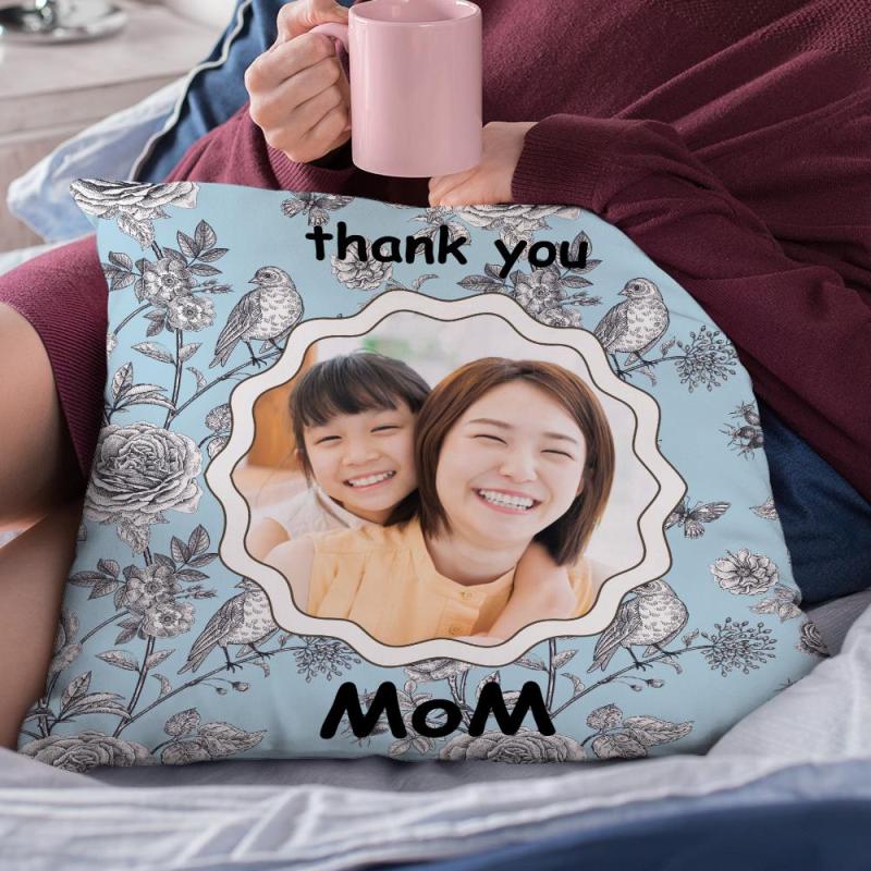 カスタム写真クッション-写真入れ可能な花と鳥柄の抱き枕お母さんへの母の日プレゼント