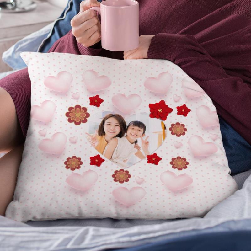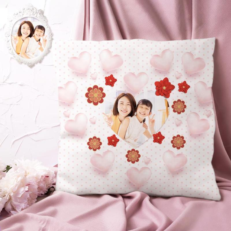 カスタム写真クッション-写真入れ可能な花とハート柄の抱き枕お母さんへの母の日プレゼント