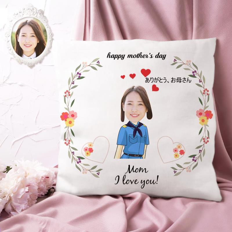 カスタム写真クッション-写真入れ可能な花輪柄の抱き枕お母さんへの母の日プレゼント