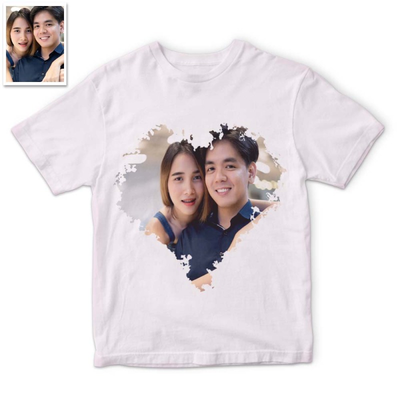 カスタム男女兼用フォトTシャツ - カップルの写真入れ可能なハート形写真T-SHIRTプレゼント