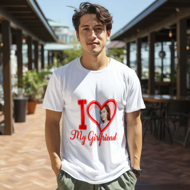 カスタム男女兼用フォトTシャツ - 彼女の写真入れ可能なハート形写真T-SHIRTプレゼント