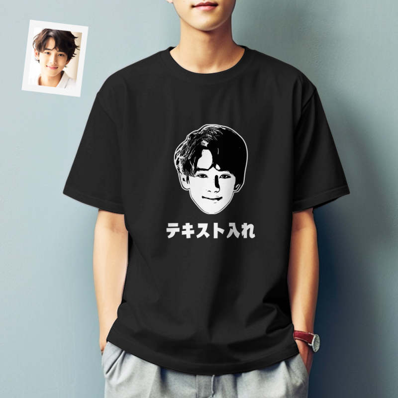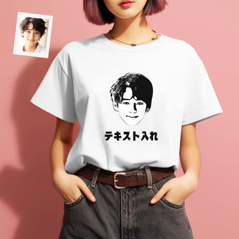 カスタム男女兼用フォトTシャツ - 写真と名前入れ可能な面白い似顔絵写真T-SHIRTプレゼント