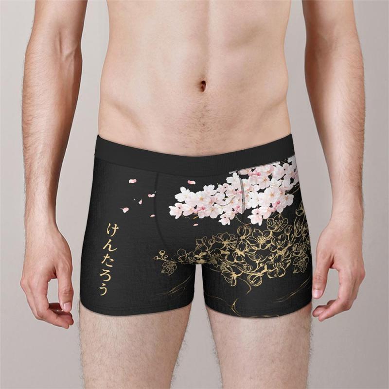 カスタム名前ボクサーパンツ-名前入り可能な美しい桜柄下着父さんや夫への新年のプレゼント