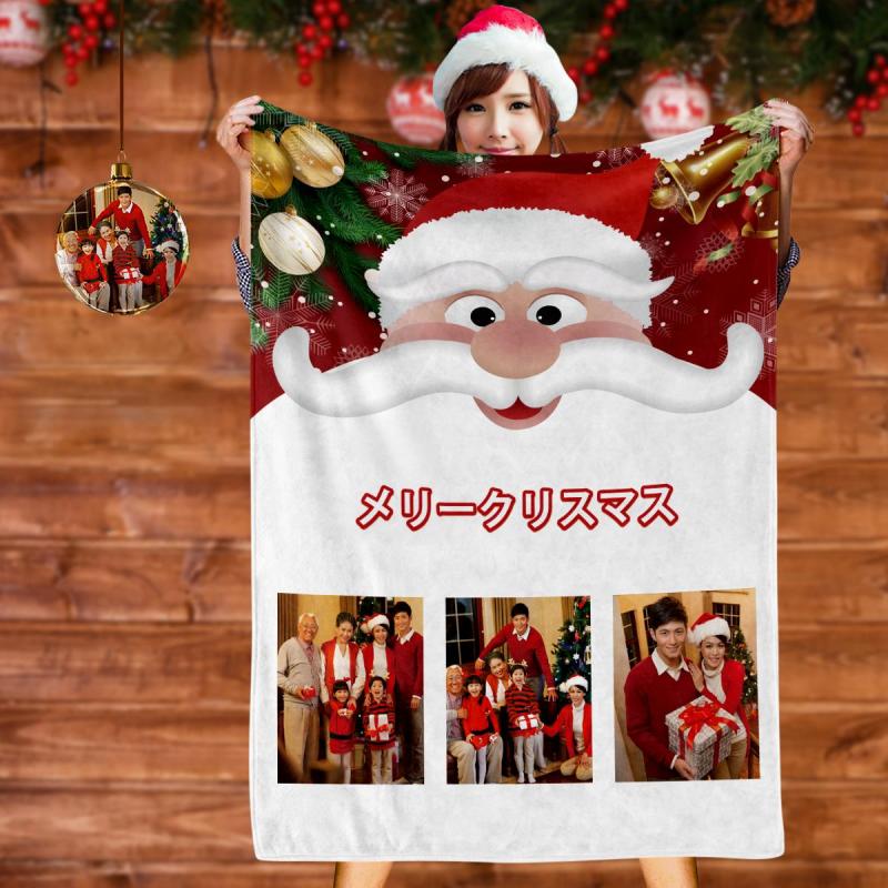 カスタムフォトブランケットギフト-写真3枚入り可能なクリスマスフリース毛布ギフト-サンタクロース柄