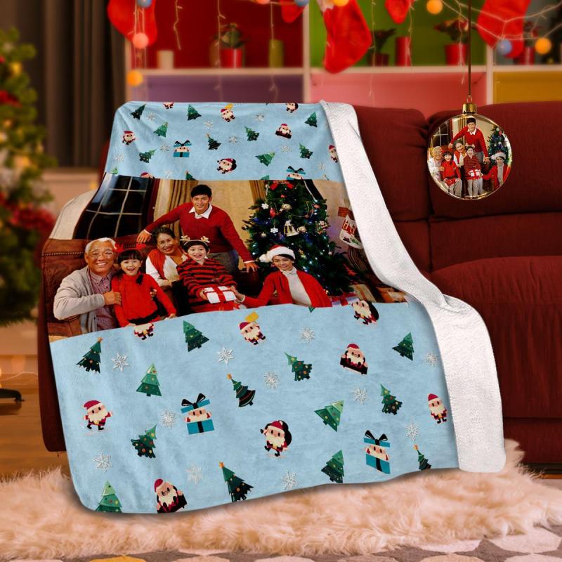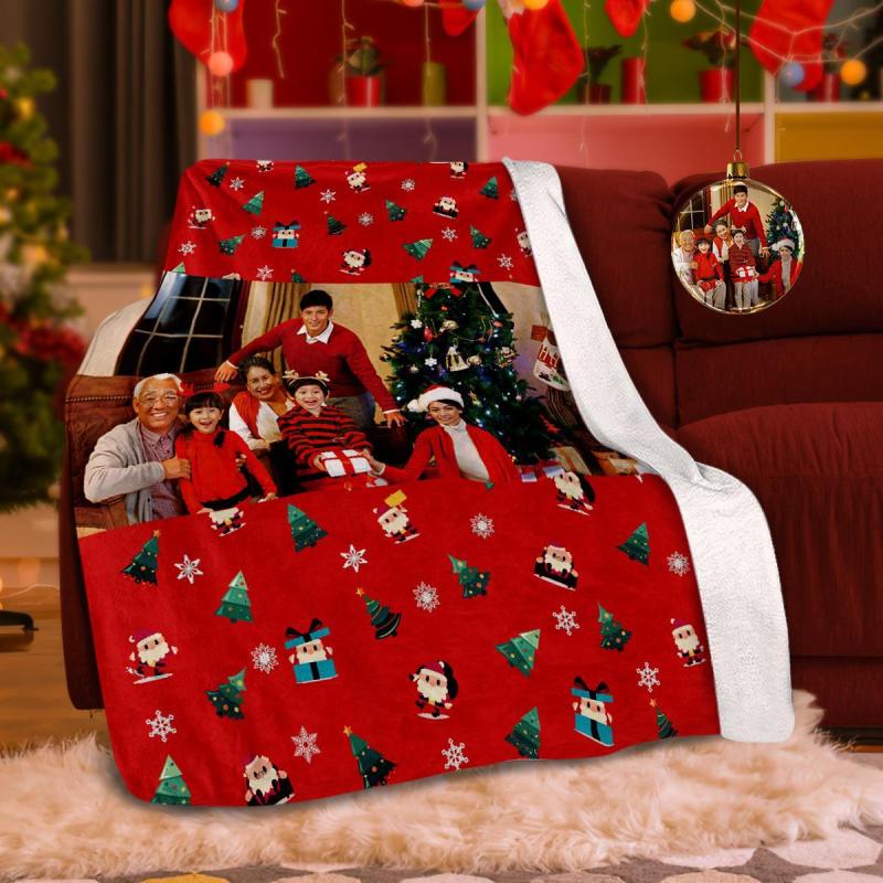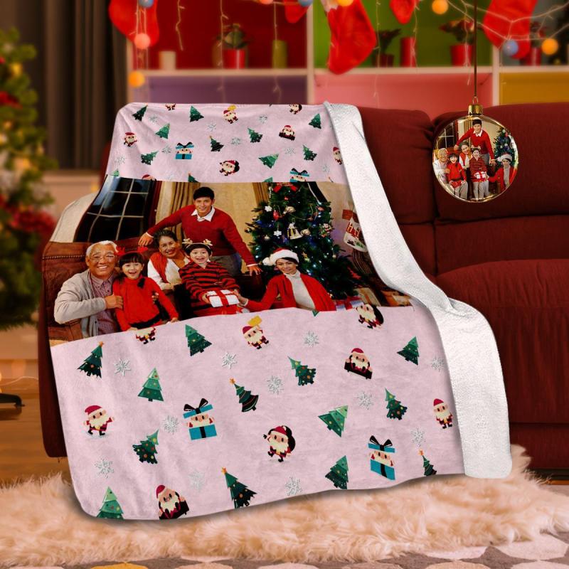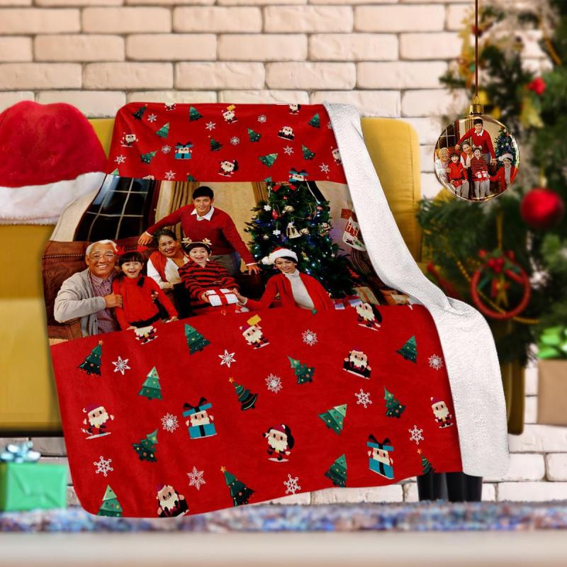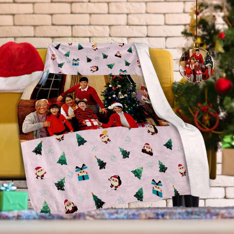カスタムフォトブランケットギフト-写真入り可能なクリスマスフリース毛布ギフト-サンタクロース柄