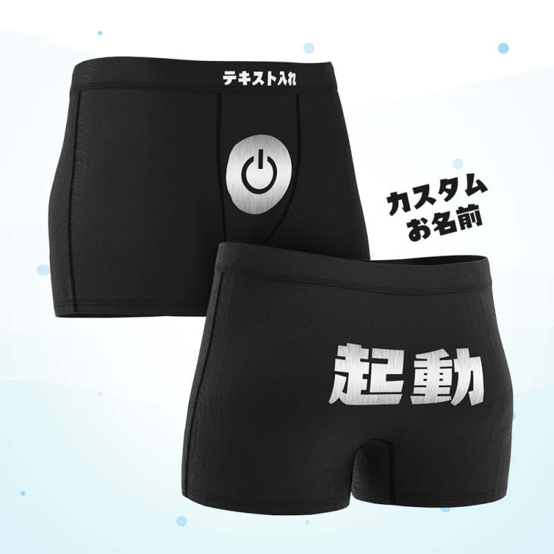 カスタムテキストボクサーパンツ-テキスト入れ可能なボタン起動柄のオリジナル下着ショーツギフト