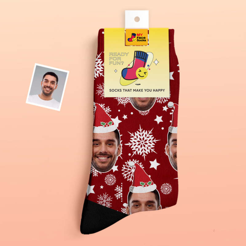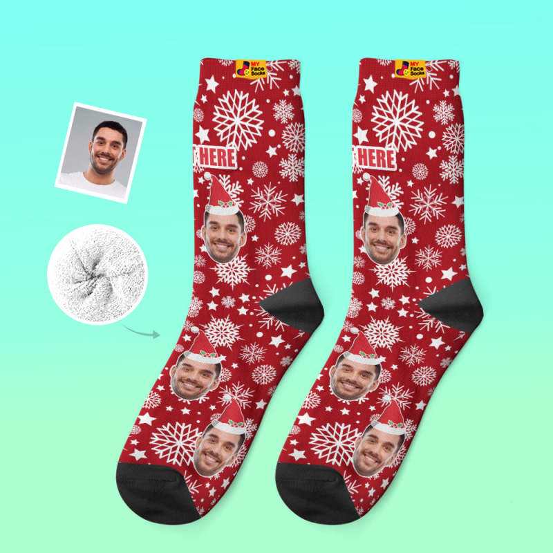 カスタム厚手フェイスソックス-写真入り可能なオリジナル秋冬暖かい靴下雪柄