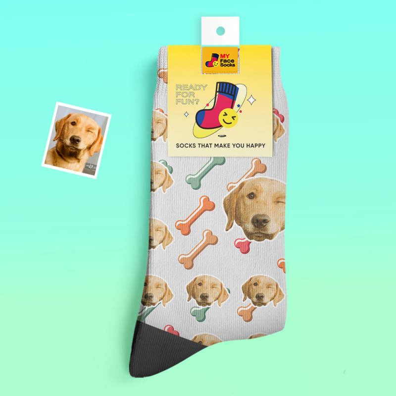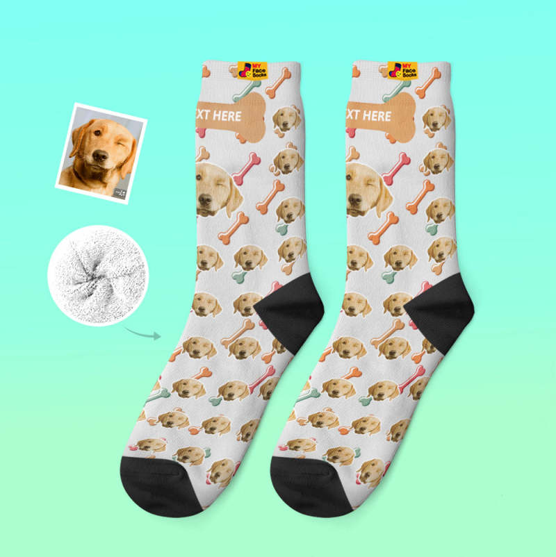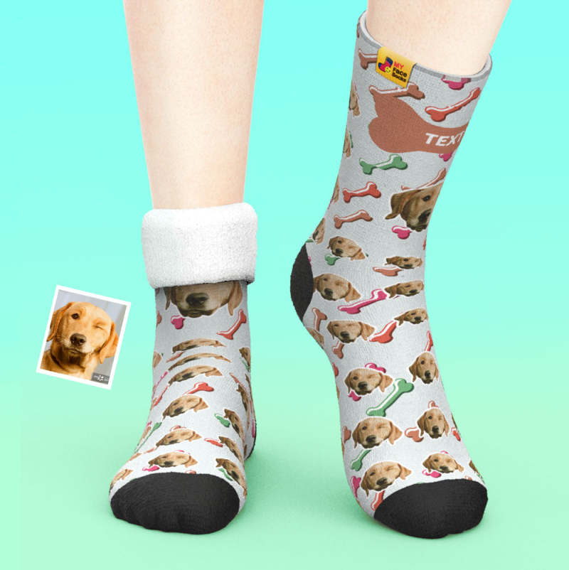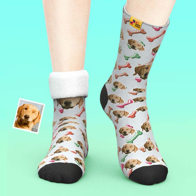 カスタム厚手フェイスソックス-愛犬の写真入り可能なオリジナル秋冬暖かい靴下