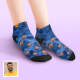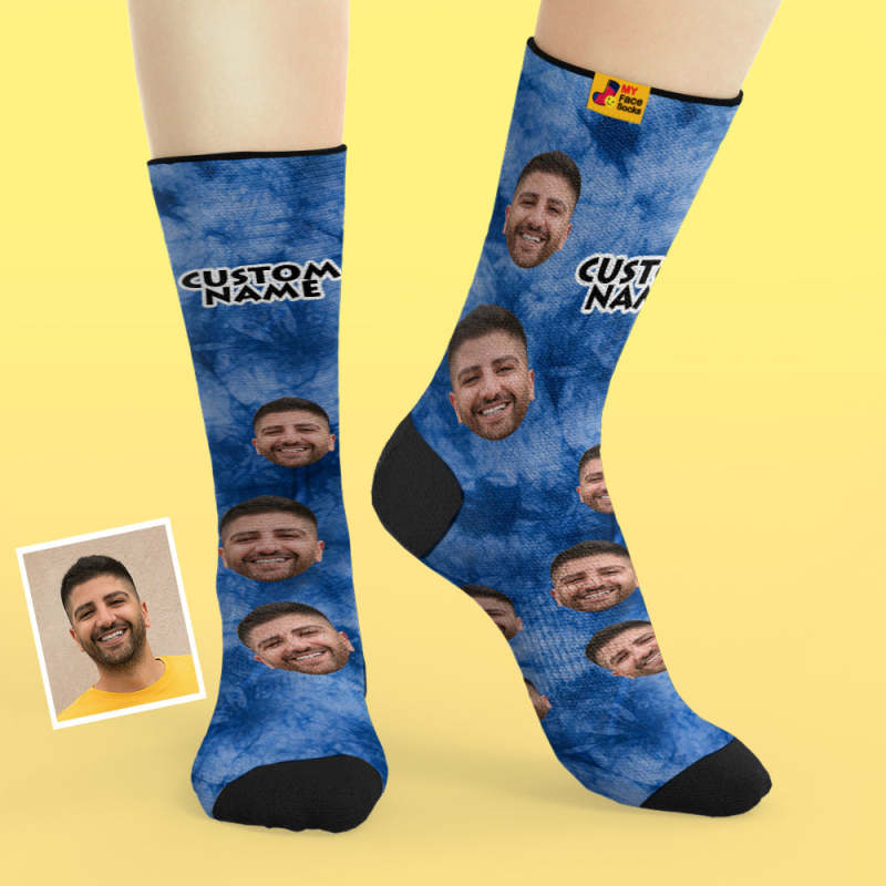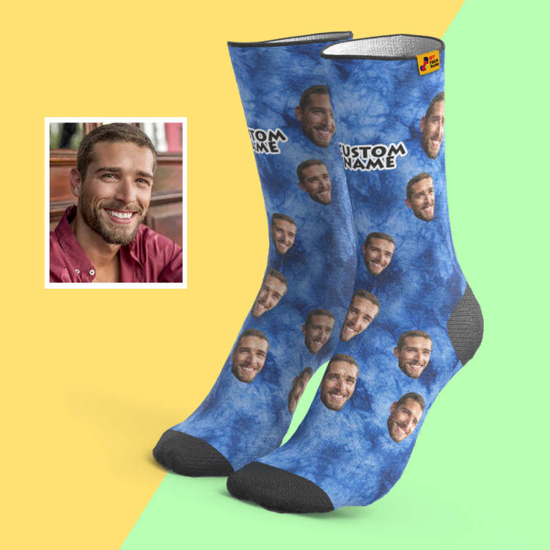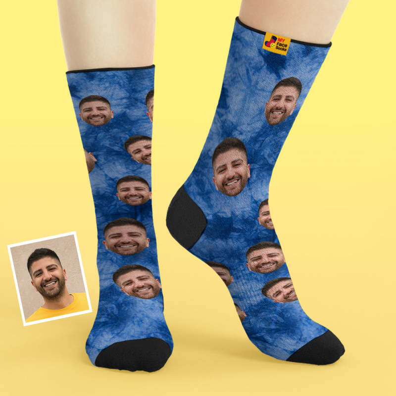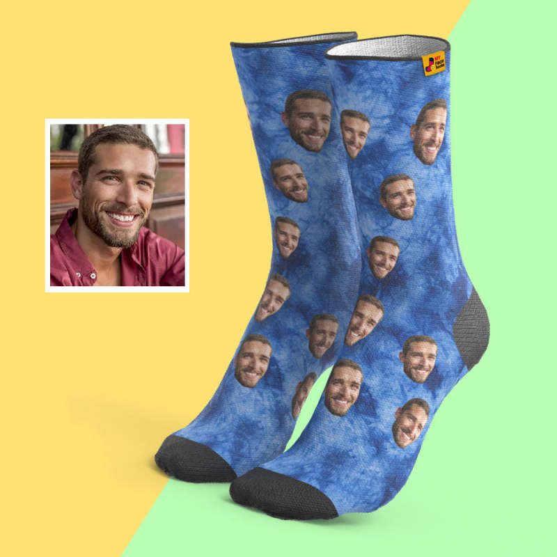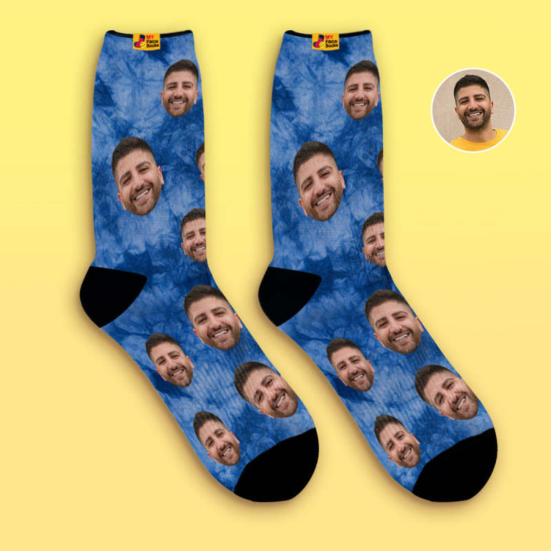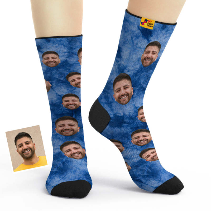 カスタム通気性フェイスソックス - 写真入れ可能なオリジナル靴下ギフト - 鮮やかな絞染めブルー