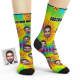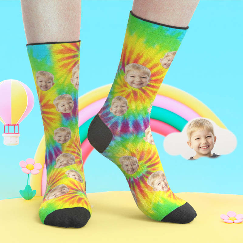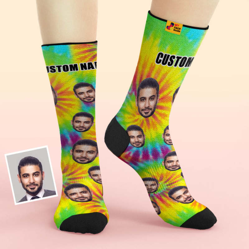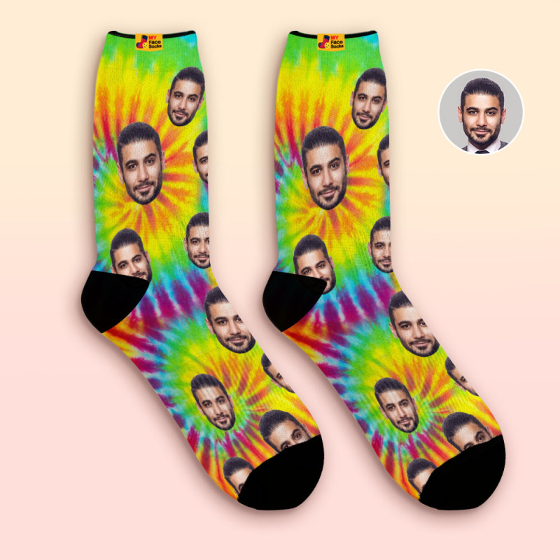 カスタム通気性フェイスソックス - 写真入れ可能なオリジナル靴下 - 絞染イエロー