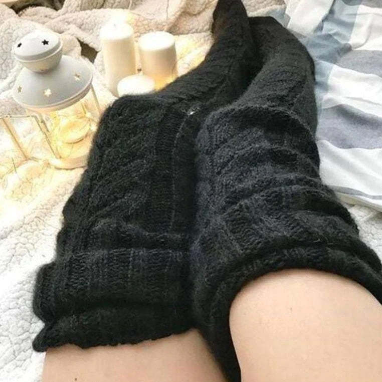 ニットオーハイソックス-レディース冬用脚の保温カバー膝上厚手暖かい靴下