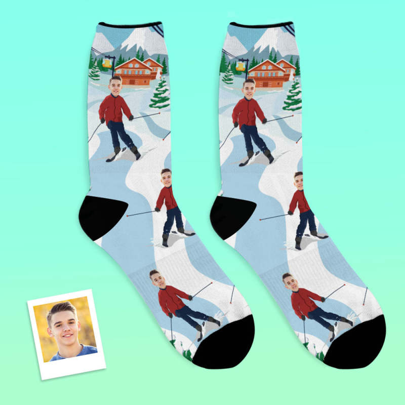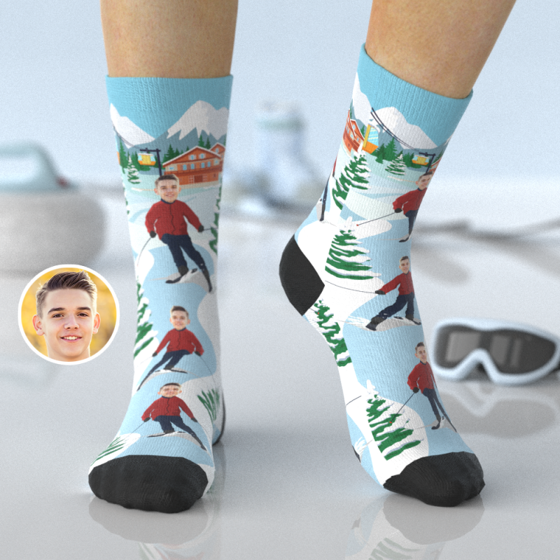 カスタム通気性フェイスソックス - 写真入れ可能なオリジナル靴下 - スキー競技