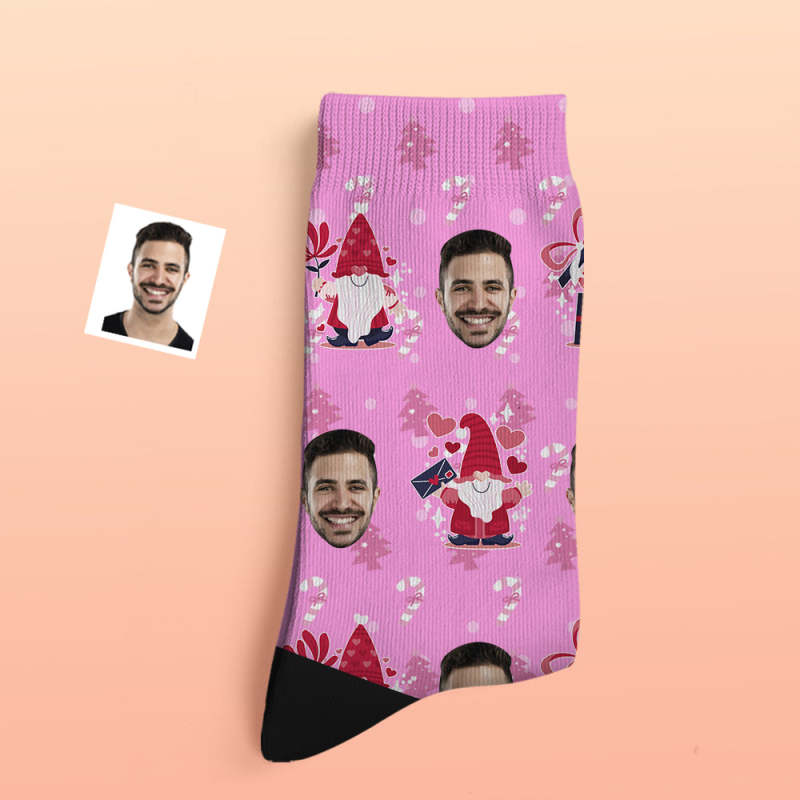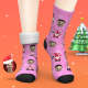カスタム厚手フォトソックス-イギリスパンデミックの写真と名入れ可能な可愛いピンクのクリスマス秋冬用暖かい靴下ギフト
