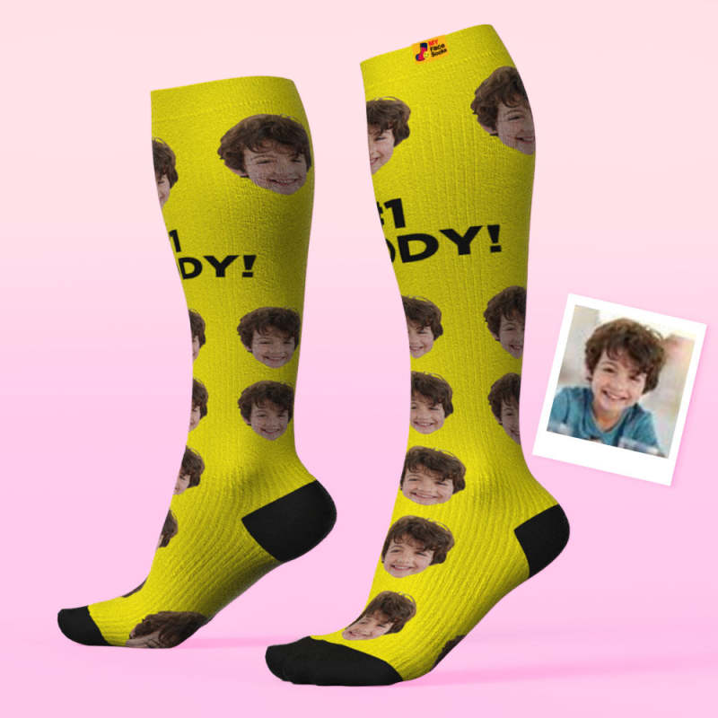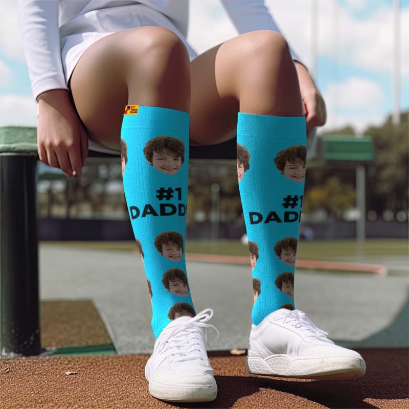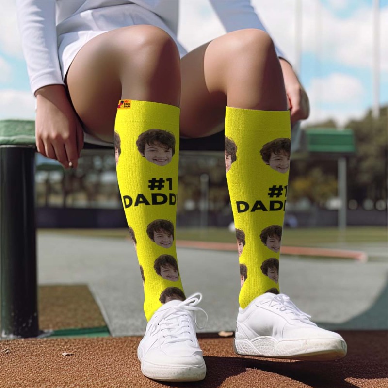 アップグレードカスタム通気性着圧ニーハイソックス - オンライン プレビューできる写真と名前入れ可能な靴下 - 一番のお父さん