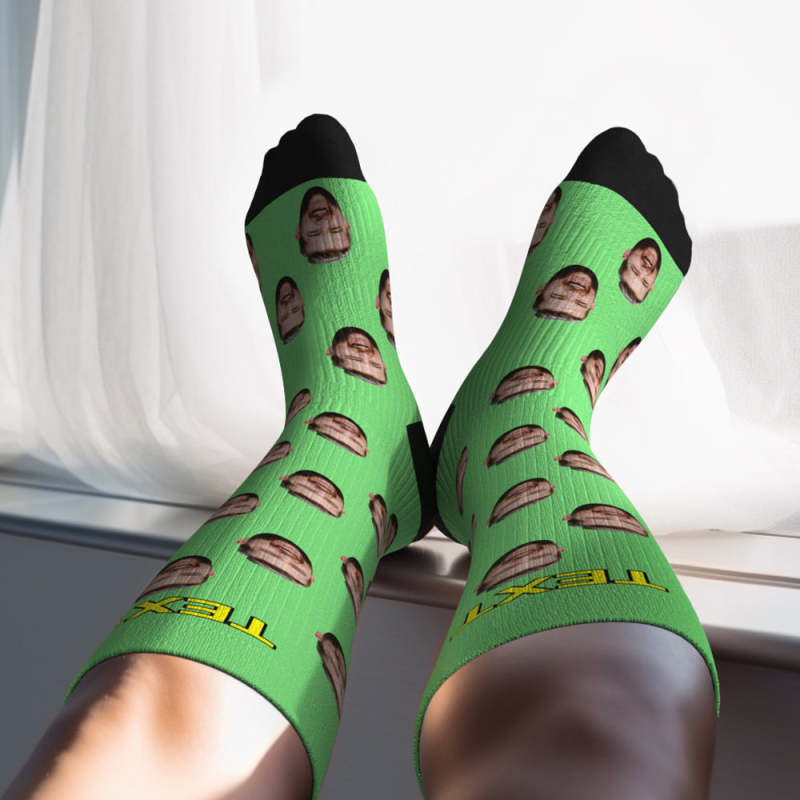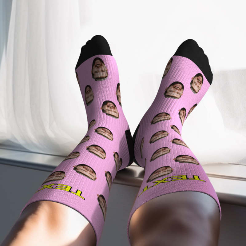 アップグレードカスタム通気性着圧ニーハイソックス - オンライン プレビューできる写真と名前入れ可能な靴下 - カラフル