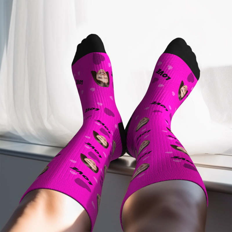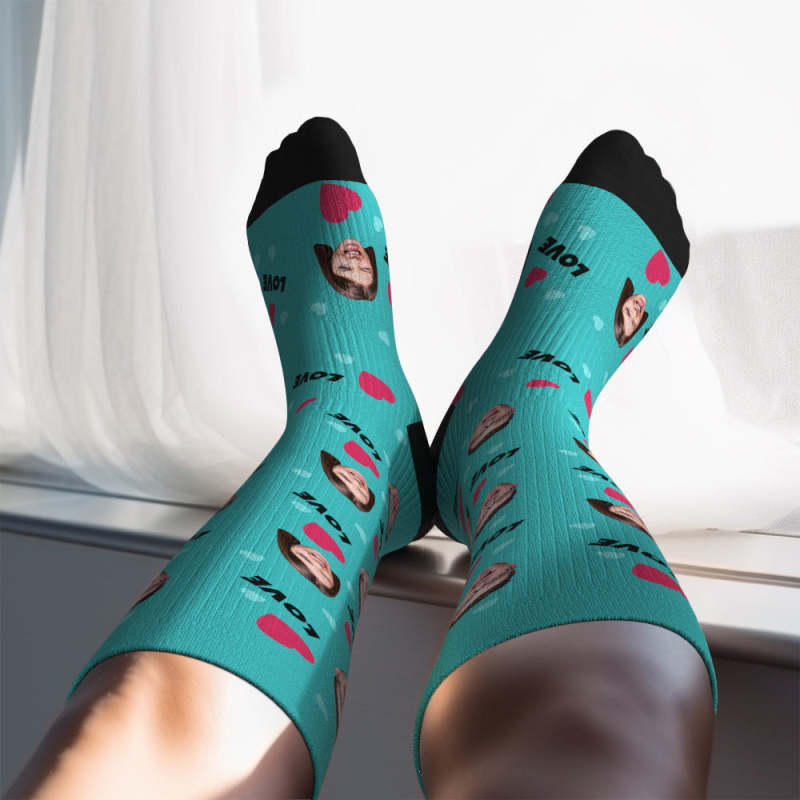 アップグレードカスタム通気性着圧ニーハイソックス - オンライン プレビューできる写真と名前入れ可能な靴下 - 愛