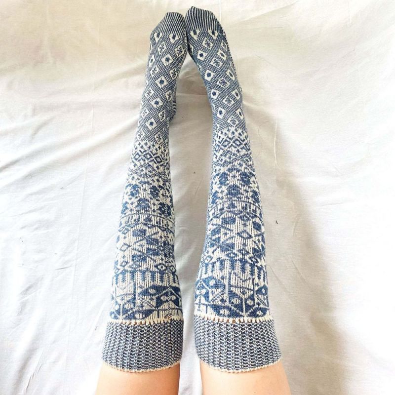 ニットオーハイソックス-レディース冬用脚の保温カバー膝上厚手暖かい靴下-几何模样