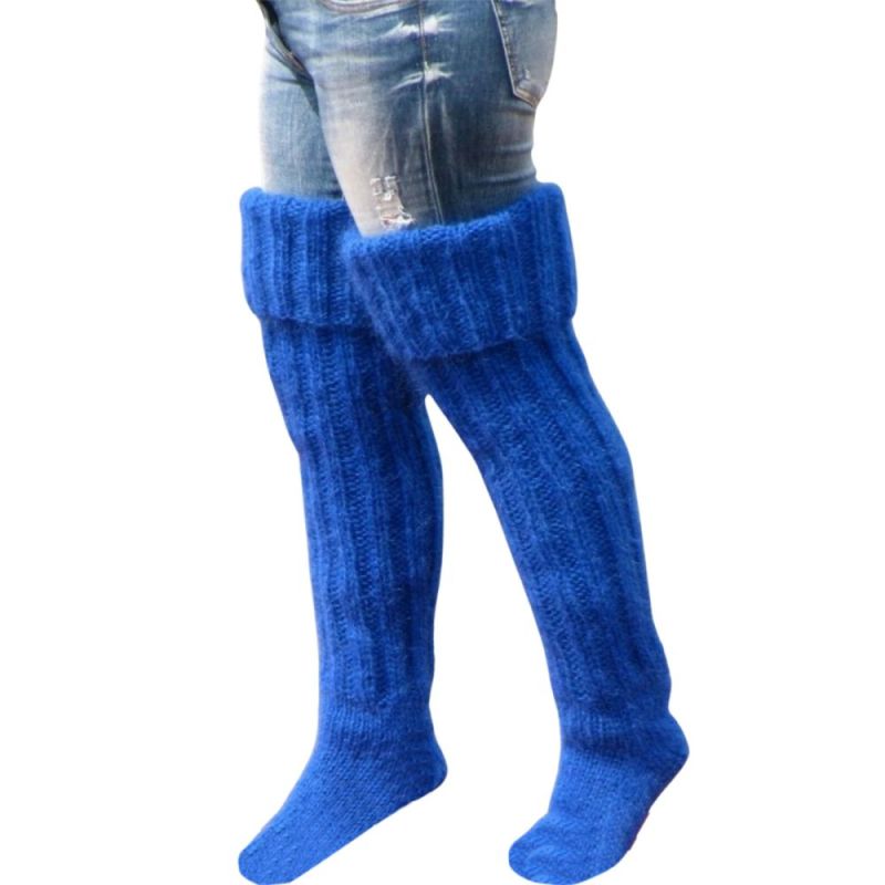 女性用無地ニットウールのハイソックス